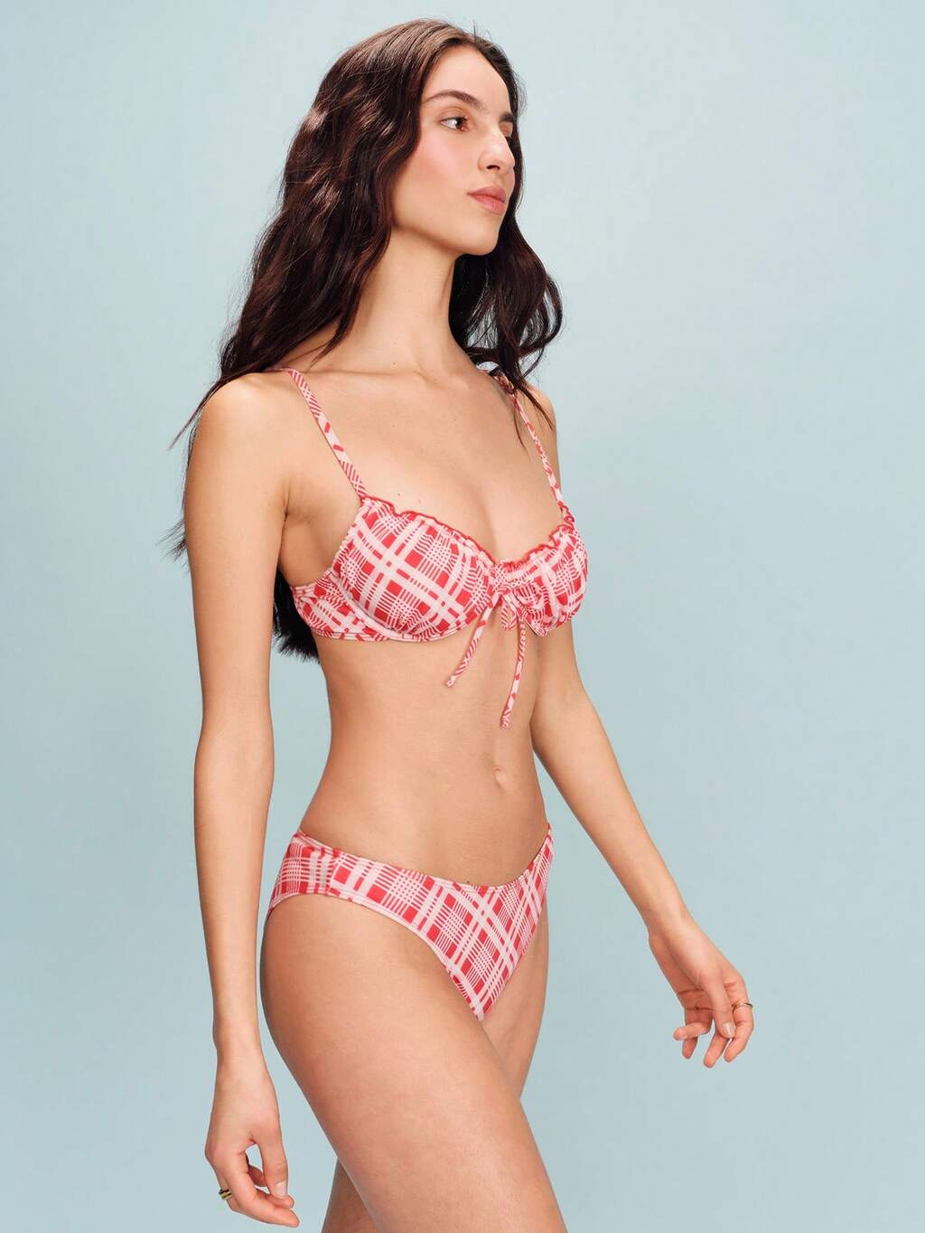 Set bikini con ferretto a stampa a quadri rossi e rosa, stile vintage carino, adatto per primavera/estate, vacanze, spiaggia, costume da bagno a quadri, costume da bagno a quadretti, costume da bagno a quadri